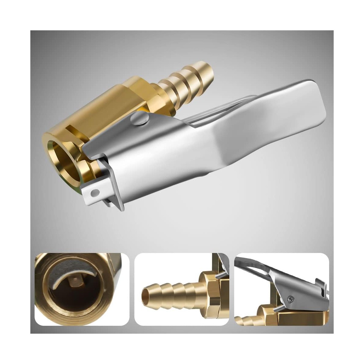 ADAPTATEUR Mandrin à Air Comprimé avec Adaptateur à Clip pour Gonfleur de Pneu, 1/4 - 8mm Adaptateur de Valve de Pneu de Voiture