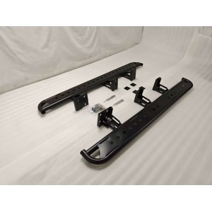 Structure mécano-soudé, les fixations sont renforcé par rapport à la monte d’origine, sur la plus par de nos modèles les marches pieds viennent se fixer sur le châssis. conçu pour une utilisation soutenu voir intensive. Pas de perçage a prévoir sur le châssis, un accès des deux côtés du châssis est souvent nécessaire (pour fixer les cavaliers) et sur quelques modèles seulement, le démontage des bas de caisse est aussi nécessaire (partis plastique) pour insérer les patte de fixations.