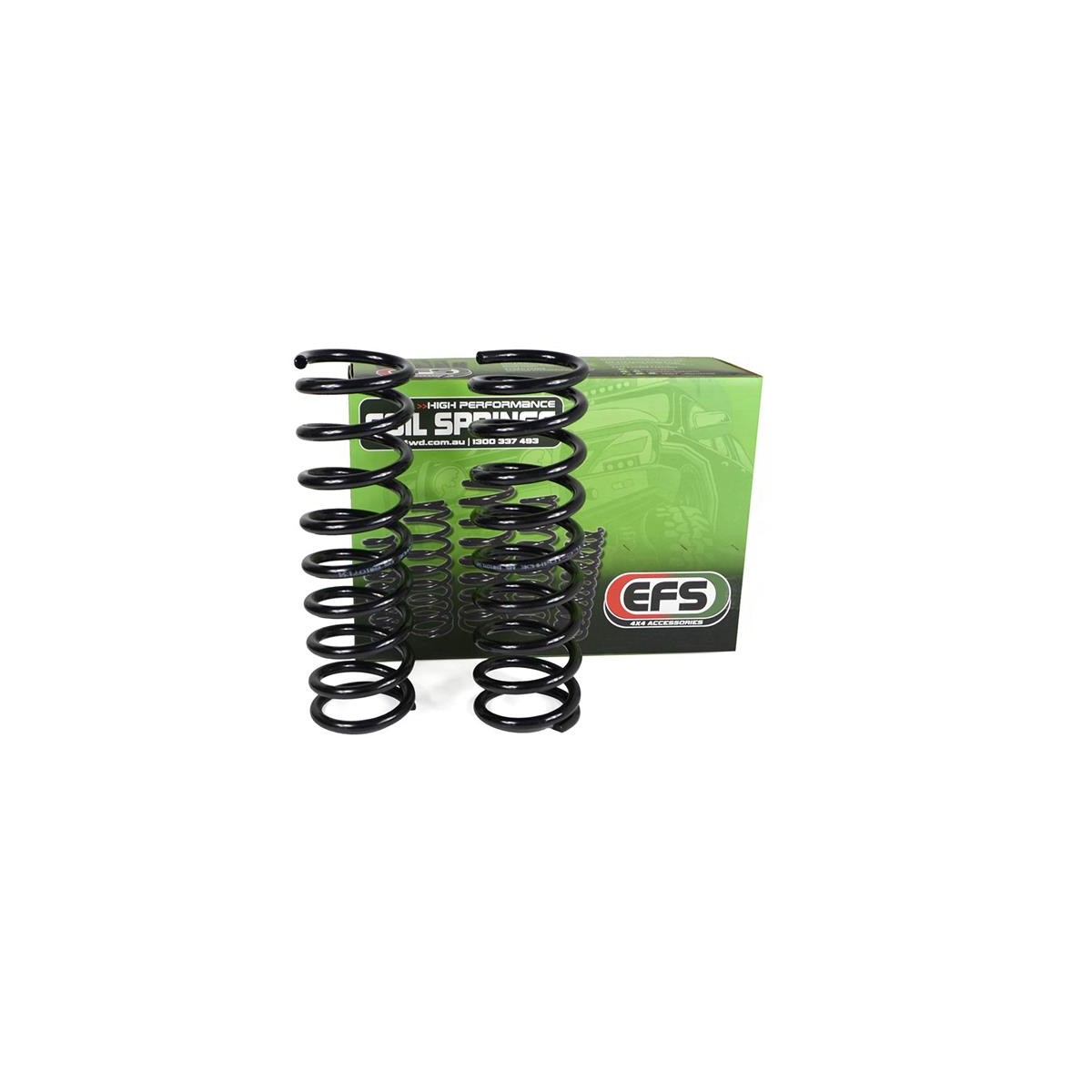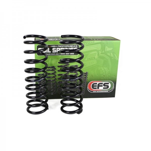 Les ressorts hélicoïdaux EFS sont produits dans une variété de hauteurs surélevées, de standard à 125 mm et également une variété de taux de poids pour s'adapter à différentes applications - Remorquage, Accessoires de support de charge, Hauteur de conduite accrue et Compétition.