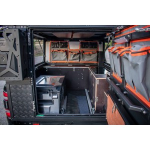 Transformez votre Toyota Hilux Revo Double Cabine 2016+ avec la cellule Canopy Camper ALU-CAB AC20 Comfort Noir. Conçue pour allier robustesse, confort et modularité, cette cellule aluminium haut de gamme offre un espace de vie sécurisé pour vos aventures overland et vos expéditions 4x4.